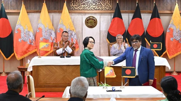 বাংলাদেশ ও ভুটানের শীর্ষ নেতাদের দ্বিপক্ষীয় বৈঠকের পর আজ উভয় দেশ স্বাস্থ্য খাতে সহযোগিতা বৃদ্ধি ও ইন্টারনেট সংযোগ বিষয়ে দুটি সমঝোতা স্মারক (এমওইউ) সই করেছে। প্রথম সমঝোতা স্মারকটি ‘স্বাস্থ্যকর্মী নিয়োগ’