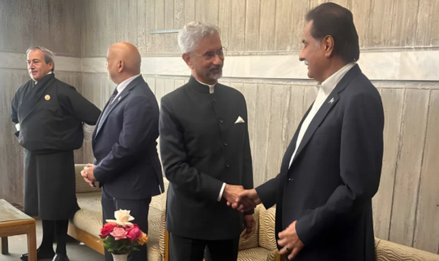 বাংলাদেশের সাবেক প্রধানমন্ত্রী খালেদা জিয়াকে শেষ শ্রদ্ধা জানাতে এসে ঢাকায় পাকিস্তানের জাতীয় পরিষদের স্পিকার আয়াজ সাদিকের সঙ্গে ভারতের পররাষ্ট্রমন্ত্রী এস জয়শঙ্করের সাক্ষাৎ হয়েছে। এসময় তারা একে অপরের সঙ্গে করমর্দন ও