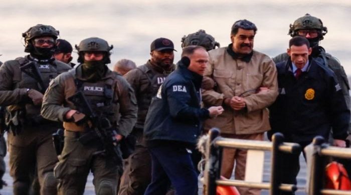 কারাকাসের সুরক্ষিত বাঙ্কার থেকে যুক্তরাষ্ট্রের বিশেষ বাহিনীর ঝটিকা অভিযানে আটক হওয়ার পর সোমবার নিউইয়র্কের ম্যানহাটন ফেডারেল আদালতে হাজির করা হয়েছে অপহৃত ভেনেজুয়েলার প্রেসিডেন্ট নিকোলাস মাদুরোকে। হ্যান্ডকাফ পরা অবস্থায় ও কড়া