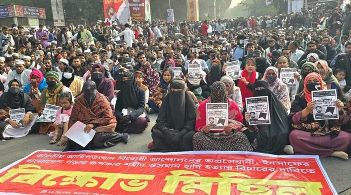 ইনকিলাব মঞ্চের আহ্বায়ক শরিফ ওসমান হাদি হত্যার বিচার দাবিতে রাজধানীর শাহবাগ মোড় অবরোধ করে বিক্ষোভ করছেন সংগঠনটির নেতাকর্মীরা। শুক্রবার জুমার নামাজের পর ইনকিলাব মঞ্চ ও জুলাই মঞ্চের নেতাকর্মীসহ সাধারণ শিক্ষার্থী