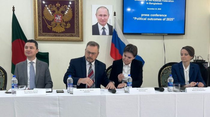 ঢাকায় নিযুক্ত রুশ রাষ্ট্রদূত আলেকজান্ডার গ্রিগোরিয়েভিচ খোজিন দুই প্রতিবেশী দেশ বাংলাদেশ ও ভারতের মধ্যে বিরাজমান উত্তেজনা কমানোর আহ্বান জানিয়েছেন। সোমবার ঢাকায় রাশিয়ান ফেডারেশনের দূতাবাসে আয়োজিত এক সংবাদ সম্মেলনে তিনি এ