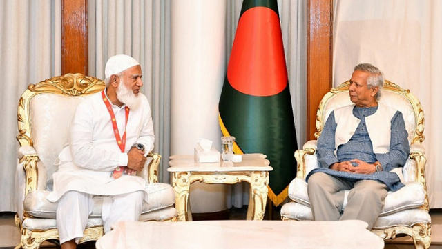 অন্তর্বর্তী সরকারের প্রধান উপদেষ্টা অধ্যাপক ড. মুহাম্মদ ইউনূসের সঙ্গে বৈঠক করেন বাংলাদেশ জামায়াতে ইসলামীর চার সদস্যদের প্রতিনিধি দল। রোববার (১৮ জানুয়ারি) সন্ধ্যায় রাষ্ট্রীয় অতিথি ভবন যমুনায় জামায়াত আমির শফিকুর রহমানের