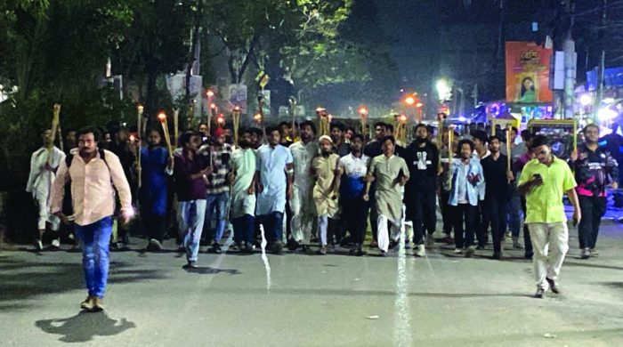 সারা দেশে আওয়ামী লীগের আগুন সন্ত্রাস ও নৈরাজ্যের প্রতিবাদে নারায়ণগঞ্জে মশাল মিছিল করেছে এনসিপির নেতাকর্মীরা। বুধবার (১২ নভেম্বর) রাত ১০টায় শহরের চাষাঢ়া কেন্দ্রীয় শহীদ মিনার থেকে এই মশাল মিছিল বের