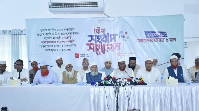 জুলাই জাতীয় সনদ বাস্তবায়ন এবং জাতীয় নির্বাচনের আগে গণভোটসহ পাঁচ দফা দাবিতে নতুন কর্মসূচি দিয়েছে বাংলাদেশ জামায়াতে ইসলামীসহ ৮টি দল। ১২ নভেম্বর (বুধবার) দুপুর বেলা ১১টায় বাংলাদেশ জামায়াতে ইসলামীর কেন্দ্রীয়